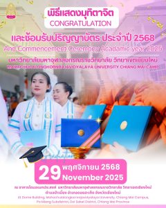 29 พฤศจิกายน 2568 ณ อาคารโดมอเนกประสงค์ มหาวิทยาลัยมหาจุฬาลงกรณราชวิทยาลัย วิทยาเขตเชียงใหม่ ตำบลป่าเมี่ยง อำเภอดอยสะเก็ด จังหวัดเชียงใหม่