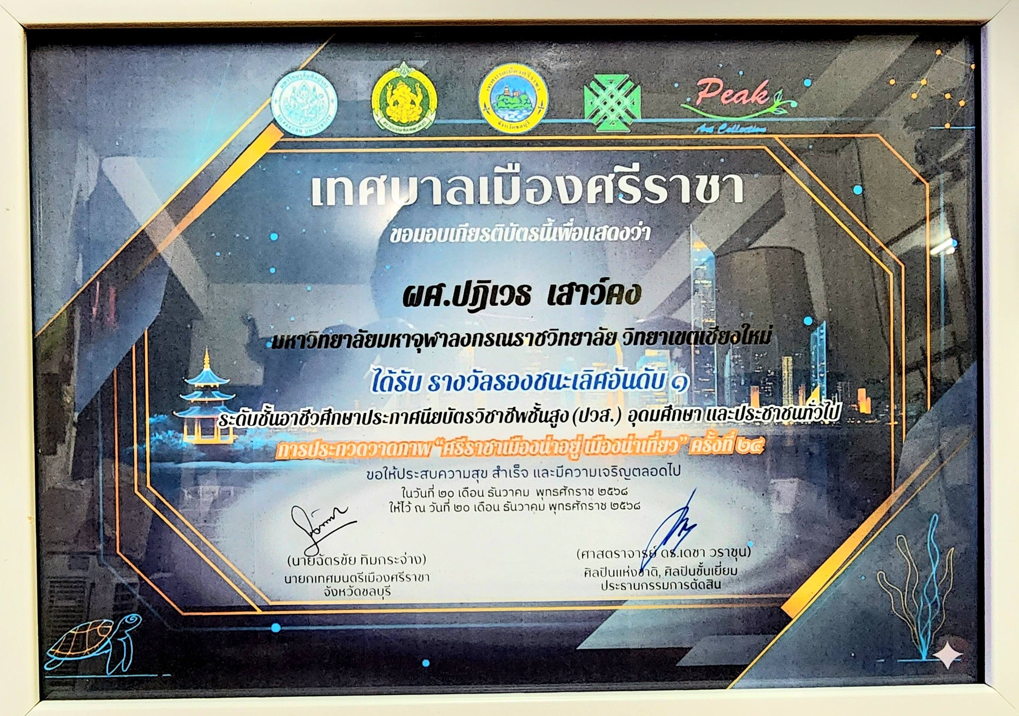 ผศ.ปฎิเวธ เสาว์คง คว้ารางวัลรองชนะเลิศอันดับ 1