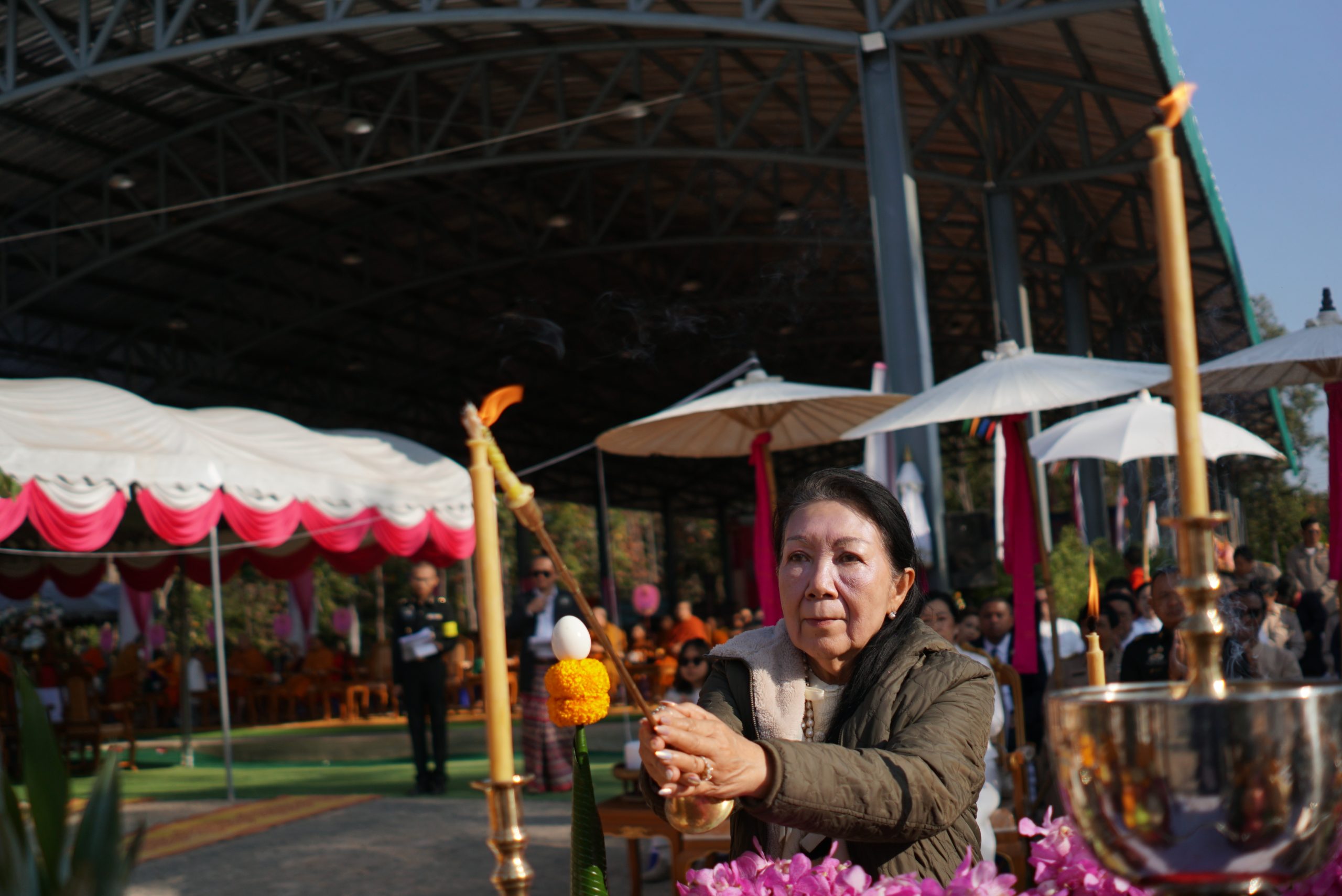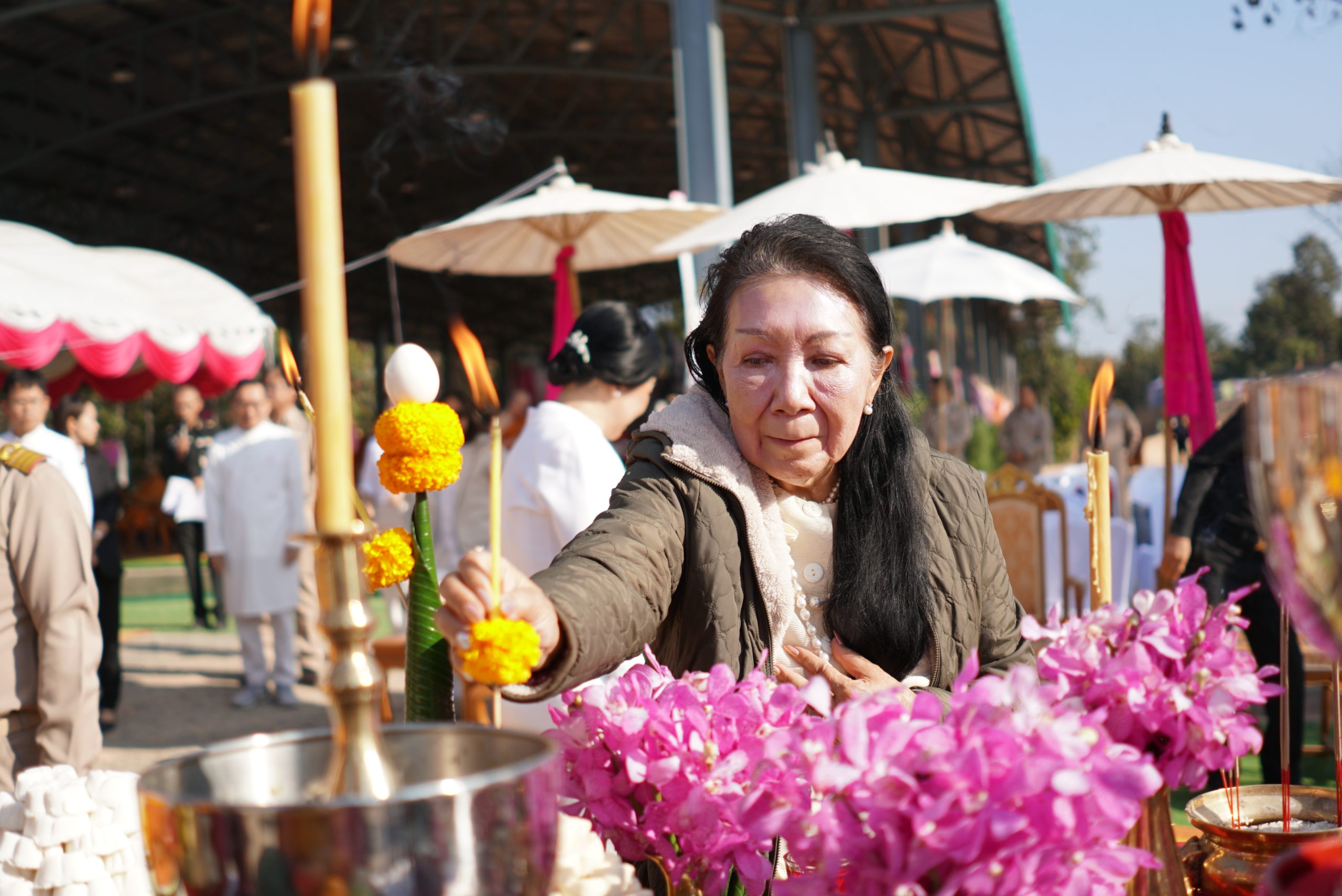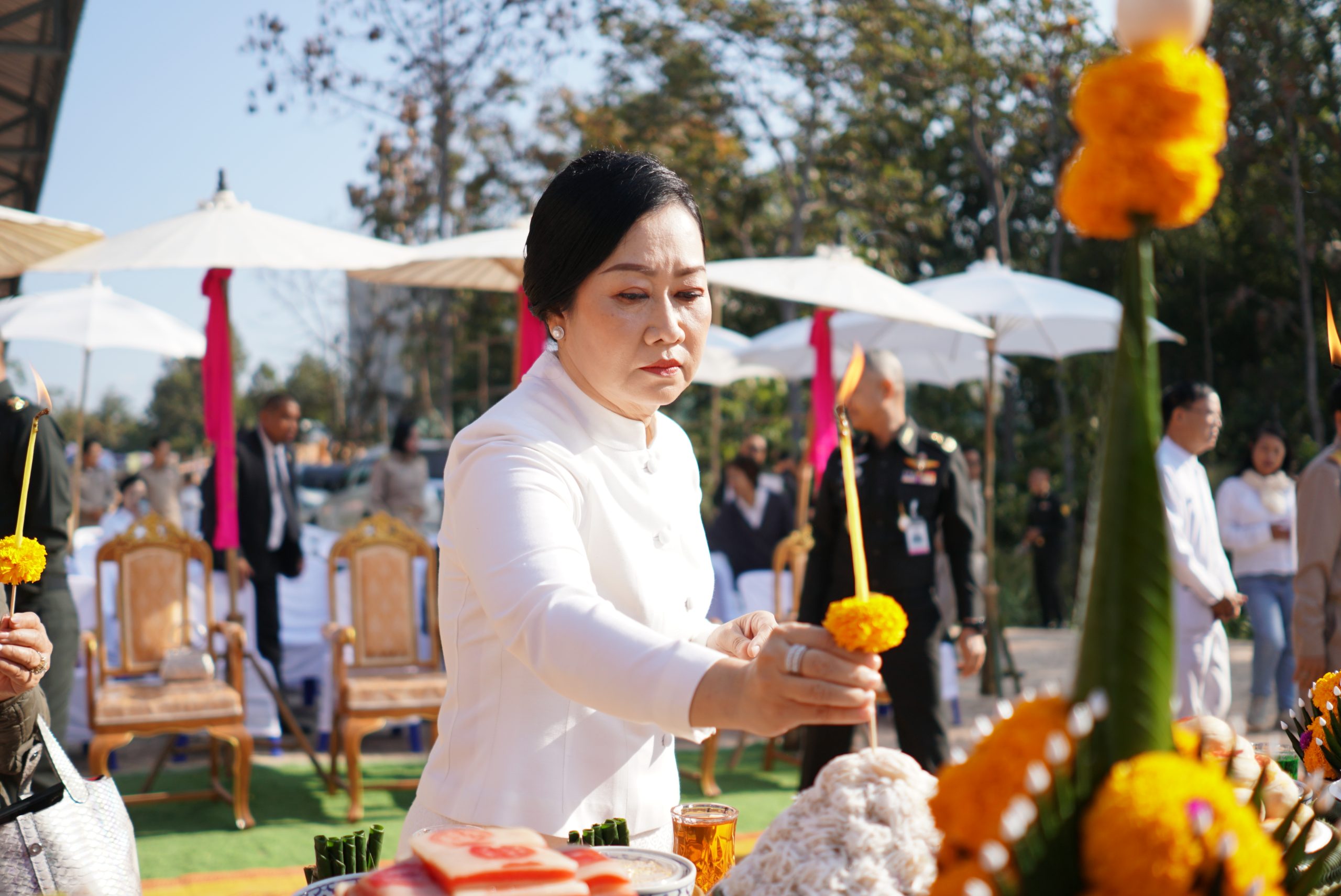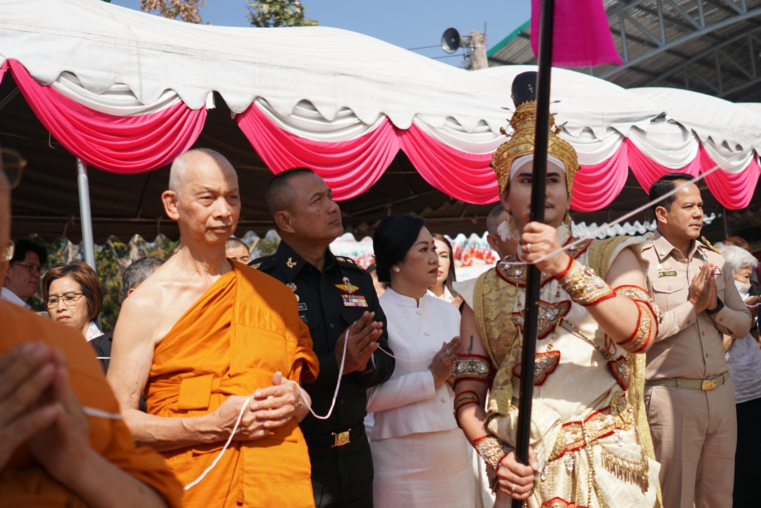 พิธีในครั้งนี้ได้รับความเมตตาจาก พระเดชพระคุณพระธรรมเสนาบดี ประธานสภาวิทยาเขตเชียงใหม่ และเจ้าคณะภาค ๗ ทำหน้าที่ประธานพิธีฝ่ายสงฆ์ โดยได้จุดธูปเทียนบูชาพระรัตนตรัย และนำกล่าวคำบูชาพระรัตนตรัย เพื่อความเป็นสิริมงคลแก่พิธี ขณะที่ พลโท ชายแดน กฤษณสุวรรณ แม่ทัพน้อยที่ ๓ ทำหน้าที่ประธานพิธีฝ่ายฆราวาส ได้จุดธูปเทียนเครื่องสักการะหน้าเครื่องบวงสรวง และ พลตรี สุจินต์ ทรัพย์สิน ผู้บัญชาการกองพลทหารราบที่ ๗ ได้จุดธูปเทียนเครื่องทองน้อยหน้าพระบรมฉายาลักษณ์ พระบาทสมเด็จพระจุลจอมเกล้าเจ้าอยู่หัว รัชกาลที่ ๕