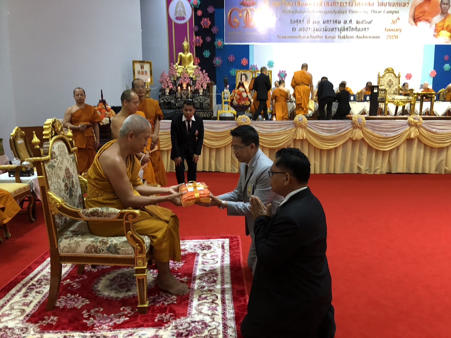 พิธีจัดขึ้น ณ หอประชุมนวมินทราชูทิศโกศัยนคร มหาวิทยาลัยมหาจุฬาลงกรณราชวิทยาลัย วิทยาเขตแพร่ โดยมีคณะผู้บริหาร คณาจารย์ บุคลากร นิสิต ตลอดจนแขกผู้มีเกียรติจากหน่วยงานภาครัฐและเอกชนเข้าร่วมงานอย่างพร้อมเพรียง บรรยากาศเป็นไปด้วยความเรียบร้อยและเปี่ยมด้วยความเป็นสิริมงคล