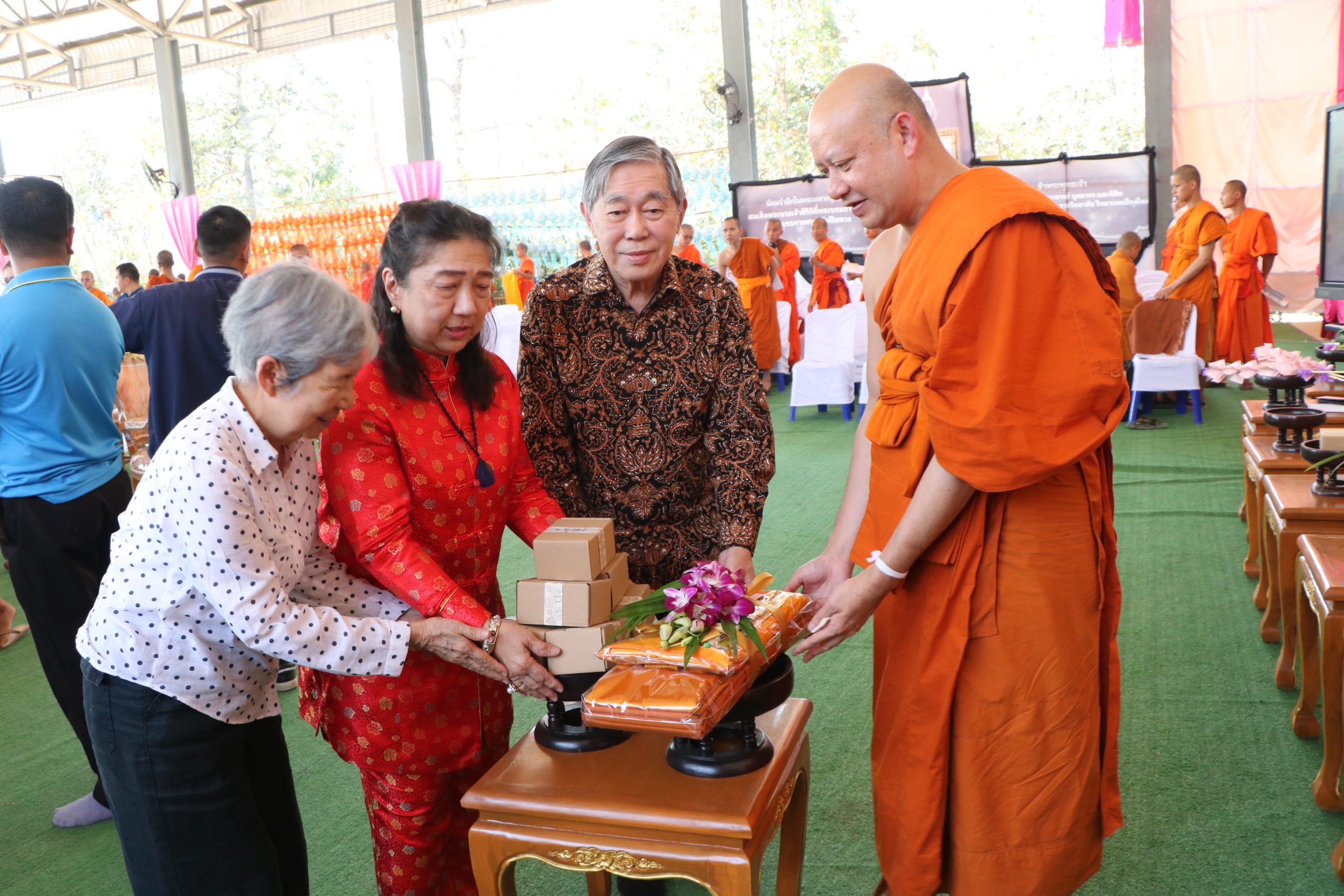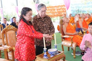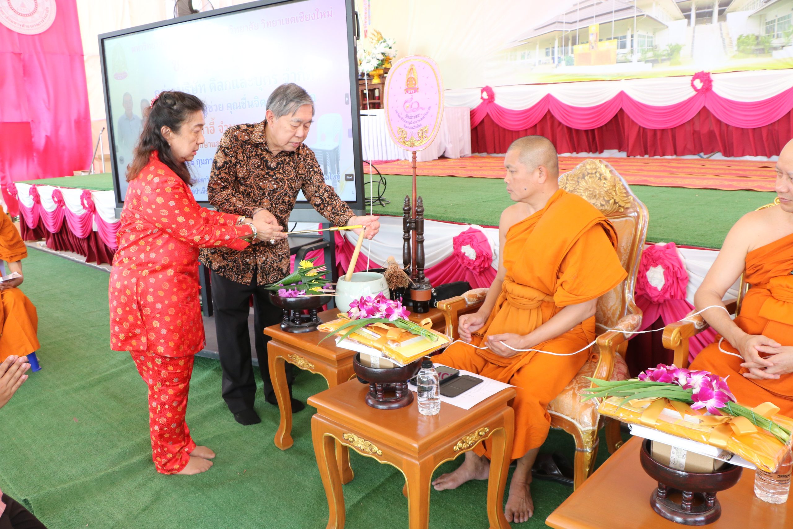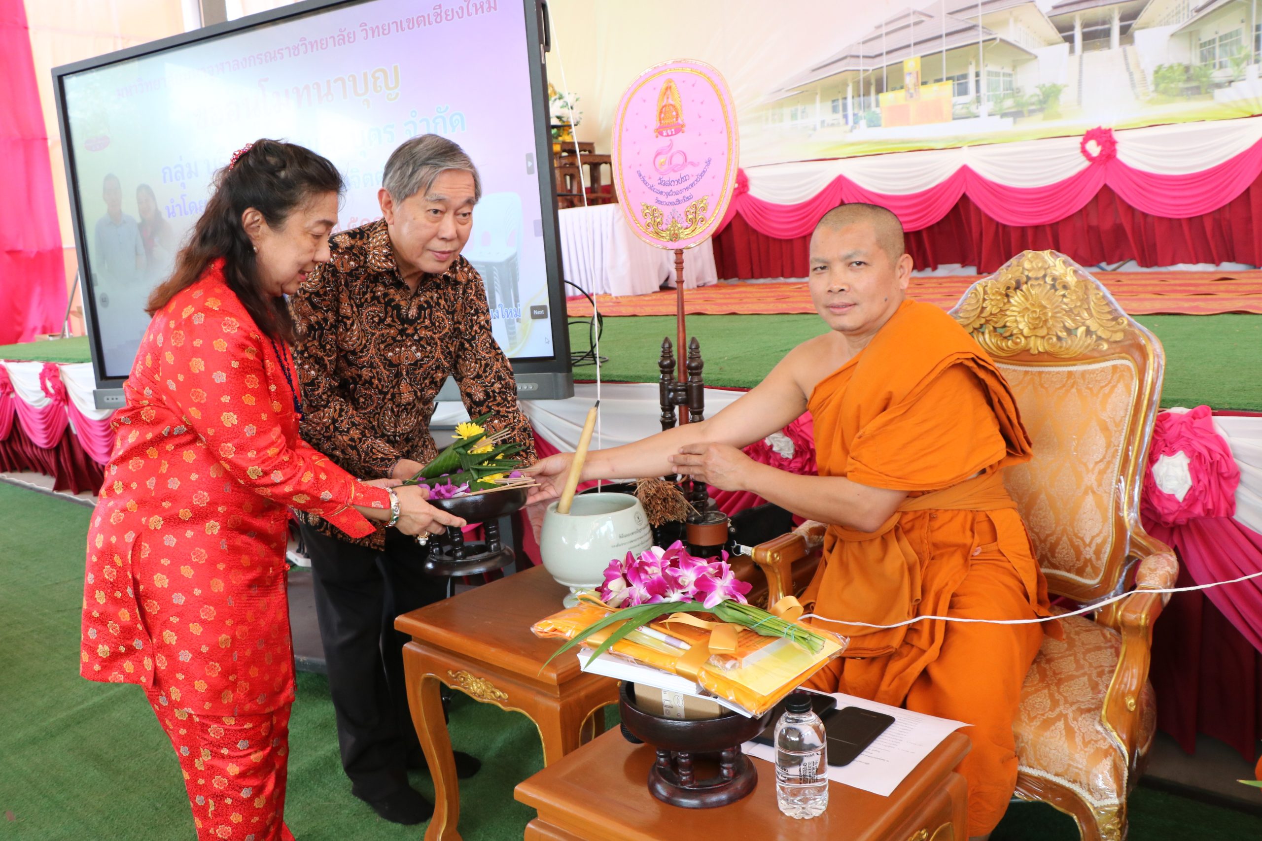 ในการนี้ ได้รับเมตตาจากพระสุธีวัชรบัณฑิต, ผศ.ดร. รองอธิการบดี มหาวิทยาลัยมหาจุฬาลงกรณราชวิทยาลัย วิทยาเขตเชียงใหม่ เป็นผู้แทนรับมอบ พร้อมประกอบพิธีเจริญพระพุทธมนต์ เพื่อความเป็นสิริมงคลแก่คณะเจ้าภาพ ผู้ร่วมพิธี และสถาบันการศึกษา
