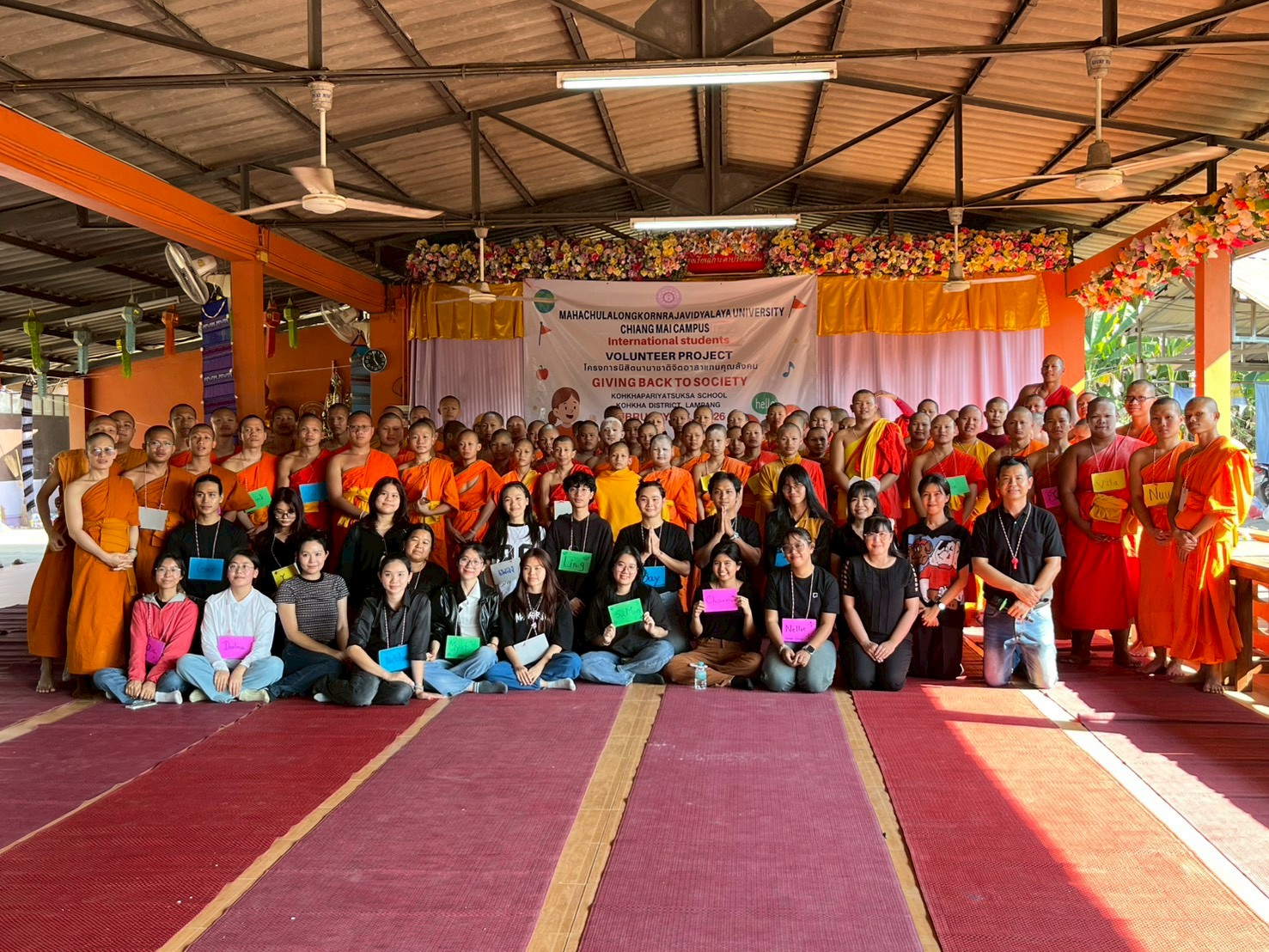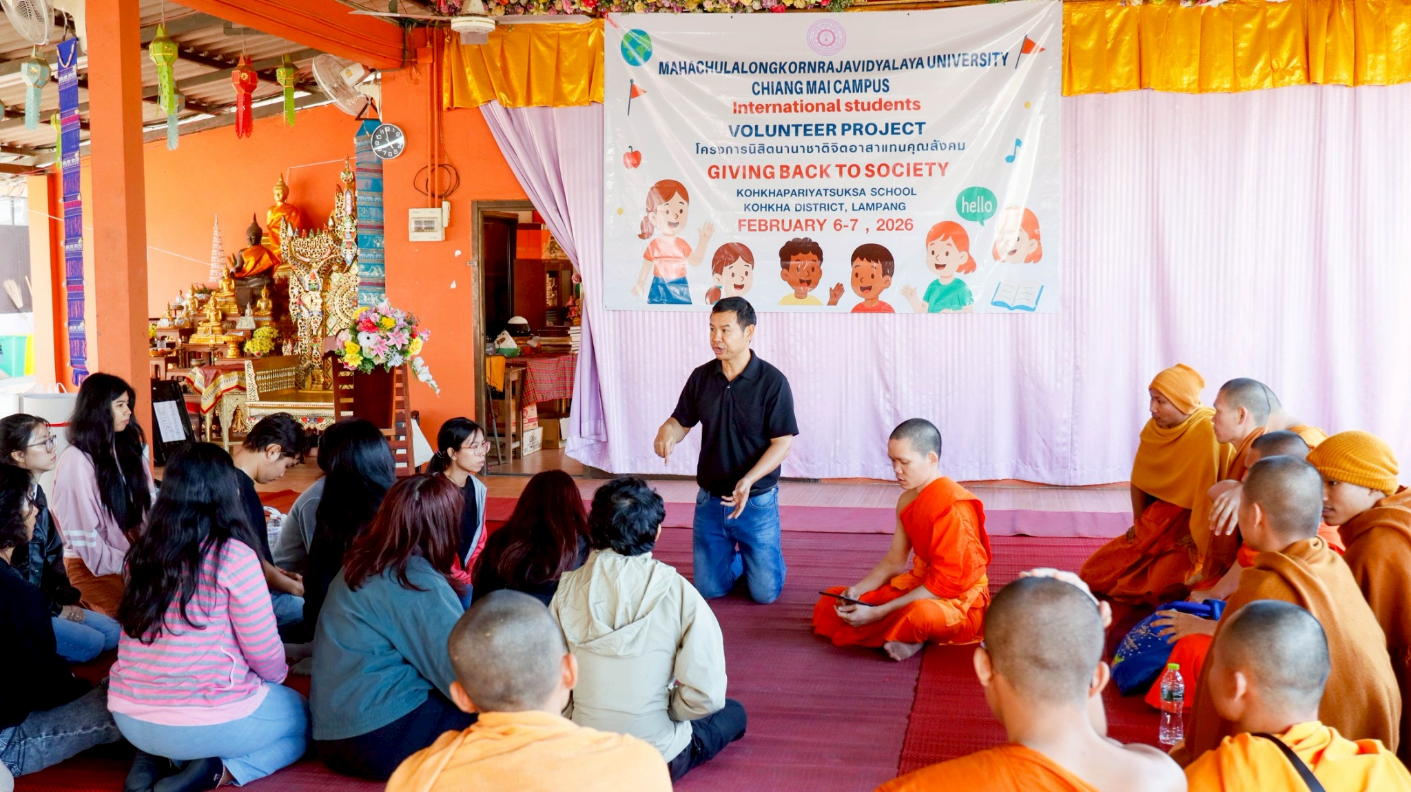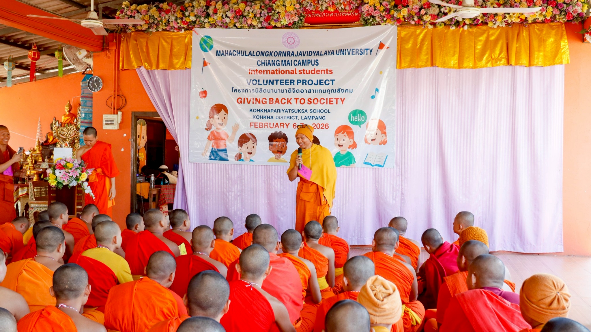 คณาจารย์และนิสิตสาขาวิชาภาษาอังกฤษ ระดับปริญญาตรี ชั้นปีที่ 1–3 มหาวิทยาลัยมหาจุฬาลงกรณราชวิทยาลัย วิทยาเขตเชียงใหม่ จัดกิจกรรม English Camp ภายใต้โครงการ นิสิตนานาชาติแทนคุณสังคม ระหว่างวันที่ 6–7 กุมภาพันธ์ พ.ศ. 2569 ณ โรงเรียนเกาะคาปริยัติศึกษา ตำบลท่าผา อำเภอเกาะคา จังหวัดลำปาง โดยมีเป้าหมายเพื่อเสริมสร้างทักษะภาษาอังกฤษพื้นฐานให้แก่นักเรียน พร้อมทั้งส่งเสริมการเรียนรู้ผ่านกิจกรรมเชิงสร้างสรรค์และการมีส่วนร่วมอย่างรอบด้าน