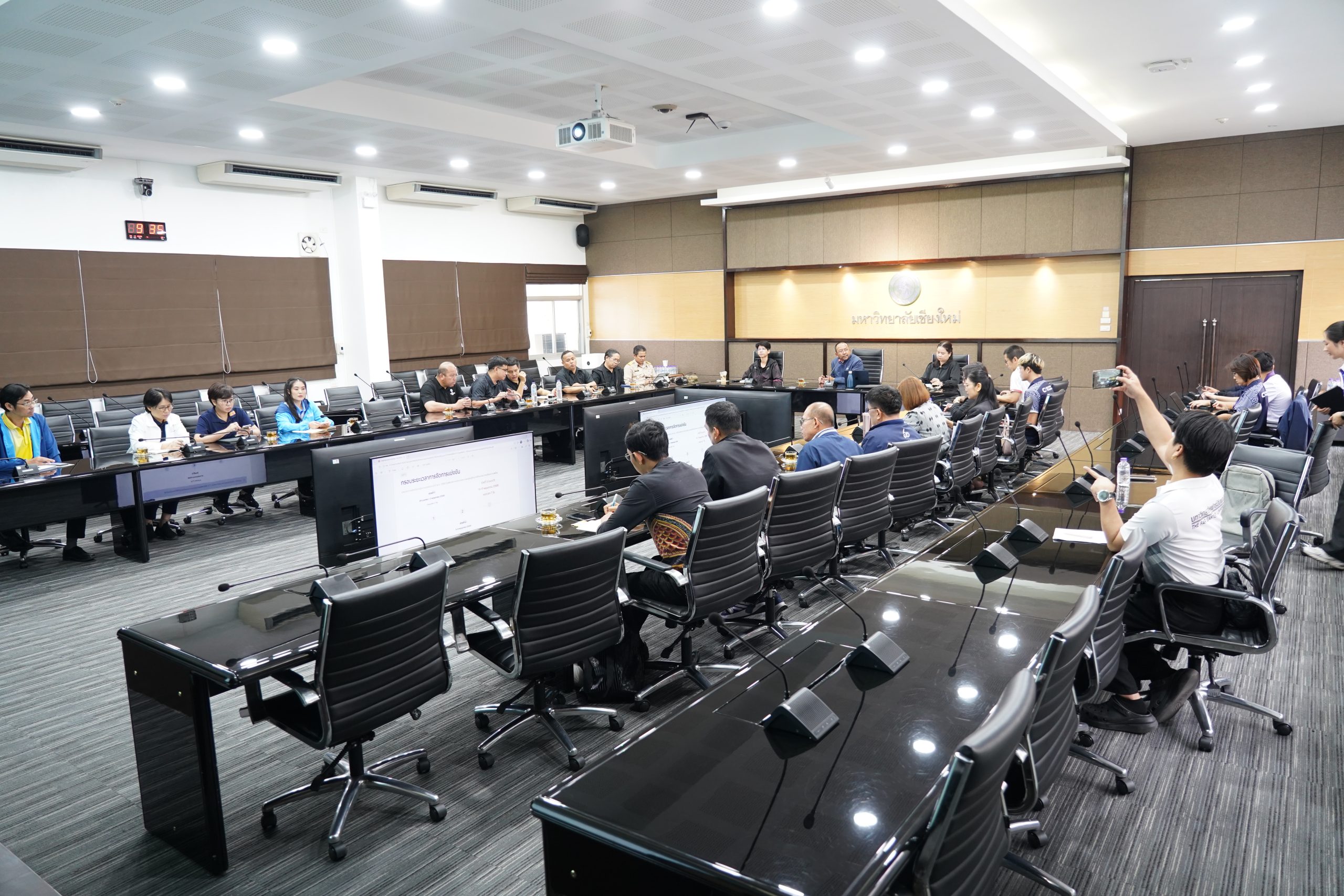 การประชุมครั้งนี้ได้รับเกียรติจาก ผศ.ดร.จิรวัฒน์ พัสระ ผู้ช่วยอธิการบดี มหาวิทยาลัยเชียงใหม่ เป็นประธานในการประชุม โดยมีผู้แทนจากสถาบันการศึกษาในจังหวัดเชียงใหม่เข้าร่วมอย่างพร้อมเพรียง เพื่อหารือแนวทางการดำเนินงาน การประสานความร่วมมือ และกำหนดรายละเอียดด้านการแข่งขันกีฬาในปีนี้