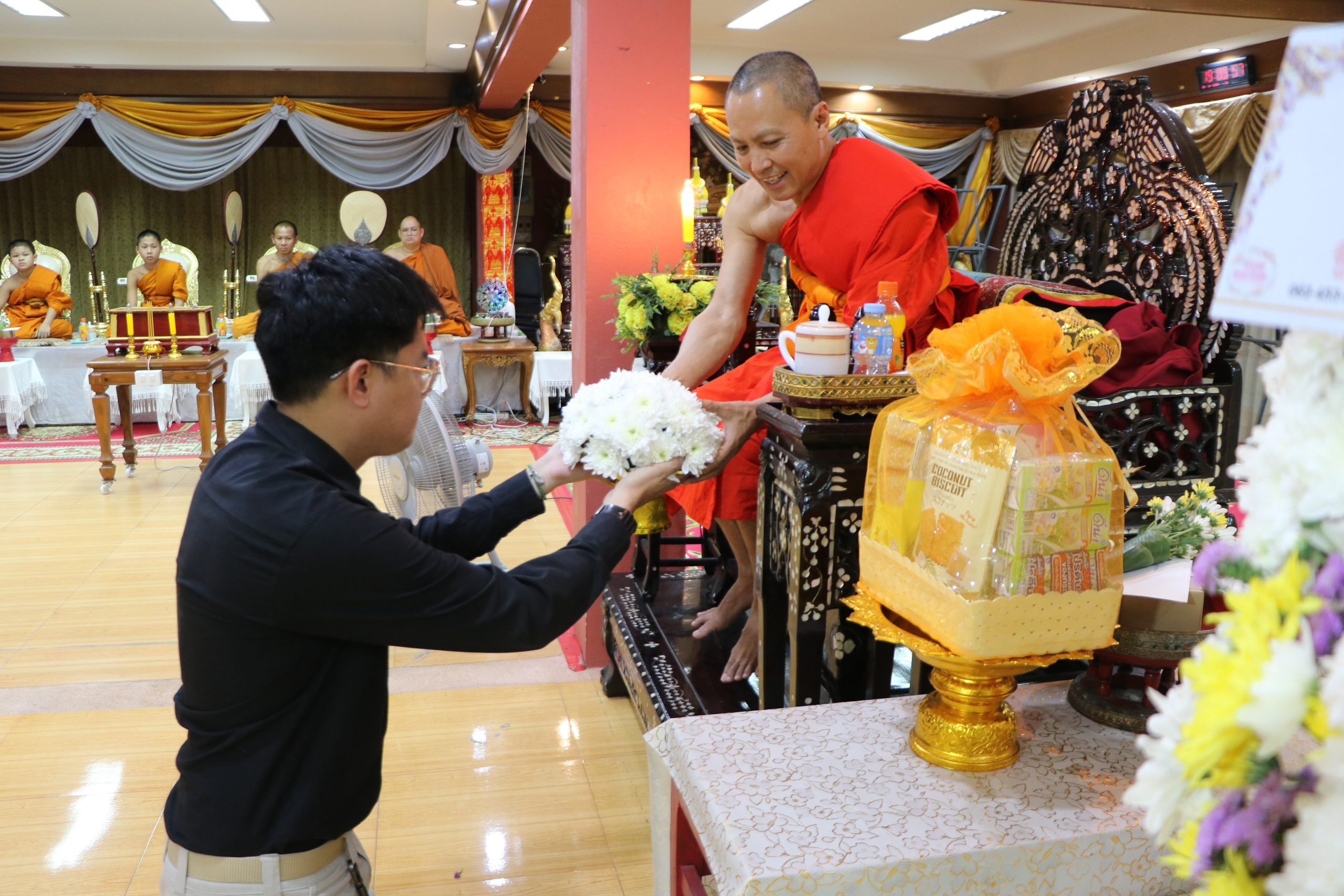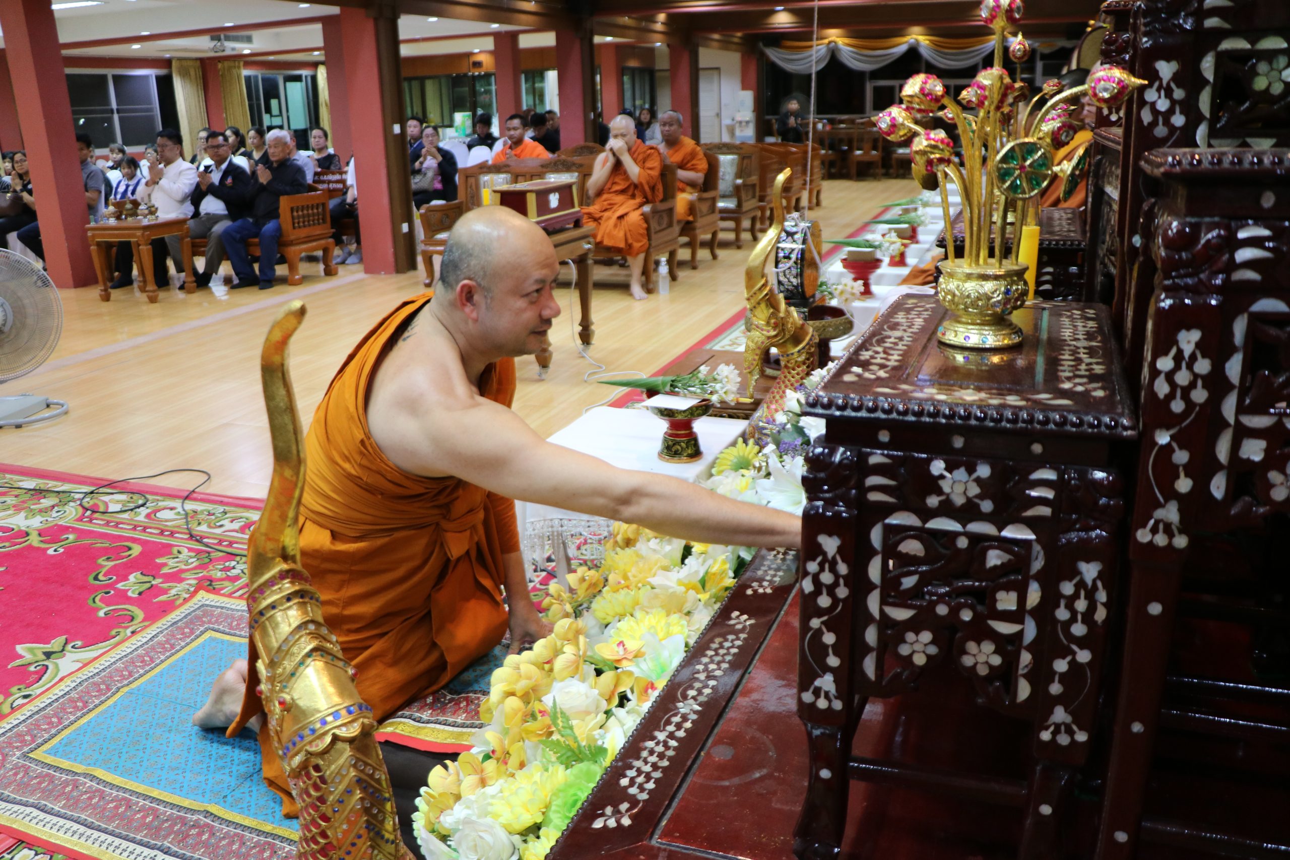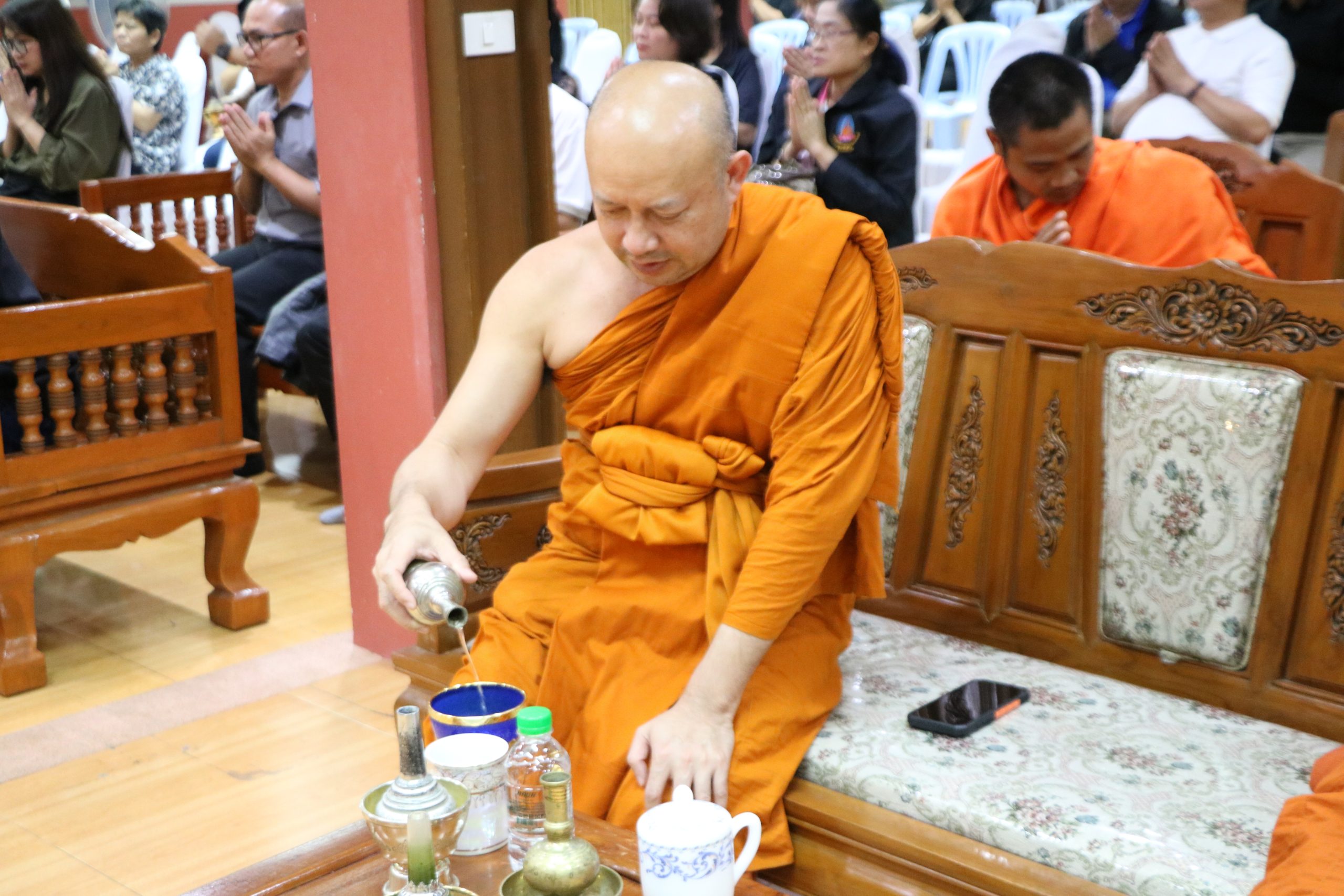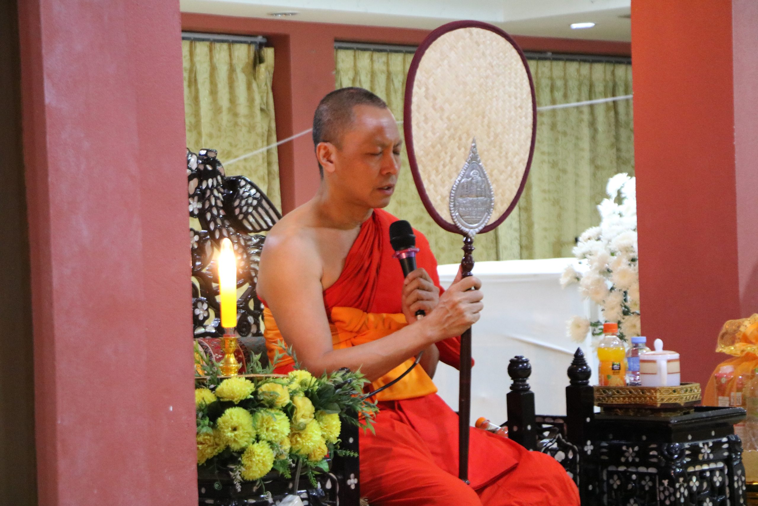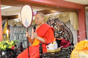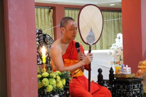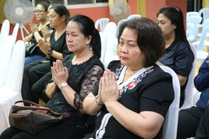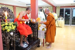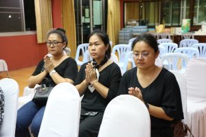 ในการนี้ได้รับเมตตาจาก พระครูสิริปริยัตยานุศาสก์, ดร. อาจารย์ประจำบัณฑิตศึกษา เจ้าอาวาสวัดพันแหวน เป็นองค์แสดงพระธรรมเทศนา แสดงธรรมให้ข้อคิดเกี่ยวกับสัจธรรมของชีวิต ความไม่เที่ยงของสังขาร และการดำเนินชีวิตด้วยความไม่ประมาท ท่ามกลางบรรยากาศแห่งความอาลัยรักและความเคารพต่อผู้วายชนม์ พร้อมทั้งมีพระสงฆ์และสามเณรประกอบพิธีสวดมาติกาบังสุกุลตามประเพณีทางพระพุทธศาสนา